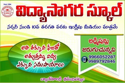 Vidyasagara School is an Educational Institution from LKG to 10th class, English Medium. We are Recognised by Govt of Andhra Pradesh.